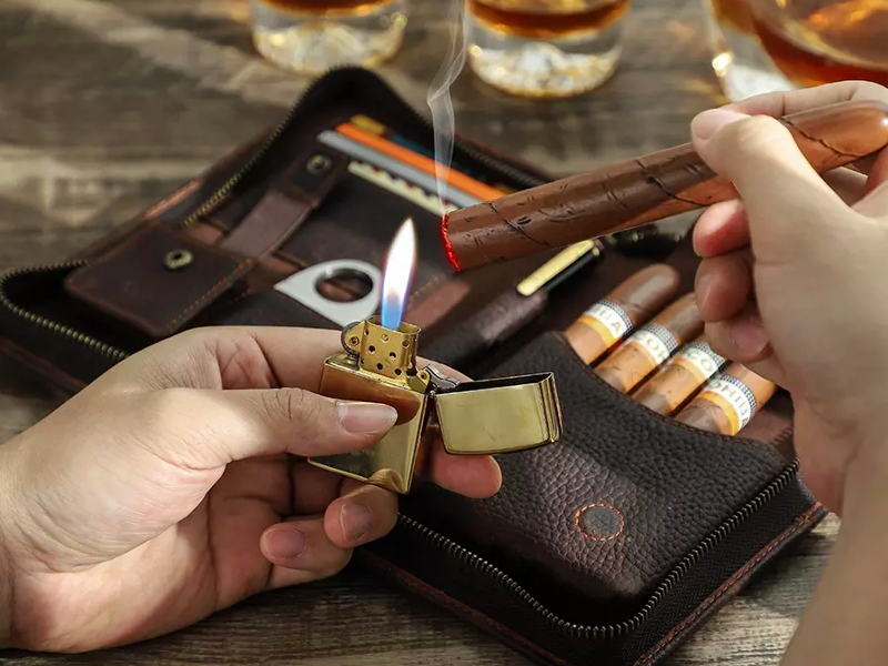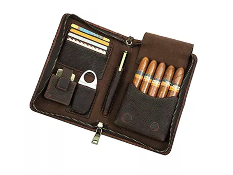 Diese Reisetasche mit Zigarrenetui ist aus hochwertigem Leder gefertigt, fein verarbeitet, leicht und elegant, komfortabel und modern gestaltet. Kleines, tragbares Zigarrenetui, das 5 St. Kleines, tragbares Zigarrenetui, das 5 Zigarren aufnehmen kann, mit einer praktischen Handschlaufe. Außerdem bietet er viel Platz für das nötige Zigarrenzubehören ( wie Zigarrenabschneider und Zigarrenfeuerzeug), so dass Sie es jederzeit mitnehmen können. Auf der Frontseite befindet sich eine Telefonhalterung, innern mit 4 Bankkarten-haketrung und einem Stifthalter im Inneren. Eine Tasche mit Reißverschluss auf der Rückseite für Dokumente.